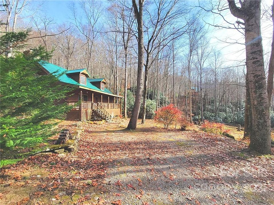 Custom log cabin on 2+ acres, cleared yard for your garden, and a stream to enjoy. Step inside to see the two-story great room with a stacked-stone fireplace (woodstove with blower). Open floorplan including the living, dining, and chef's kitchen with stainless appliances, granite counters, breakfast bar, gas stove with downdraft exhaust. Large laundry room with a double laundry sink, includes cabinets and space for your pantry. Main floor primary bedroom with walk-in closets, custom wood doors, and a full bath (tub and shower). Upstairs you'll enjoy the loft space just outside the 2nd primary bedroom with walk-in closet and full bath (shower). This is a beautiful setting, porches on both the front and back of the home, a workshop with electric for your storage or hobbies. Appliances 2013, water heater 2012, well pressure tank 2019, wood stove 2013, Metal roof 2020. Carolina Mountain Cable for TV and Internet, Suburban Propane, Vacation Rentals Allowed.