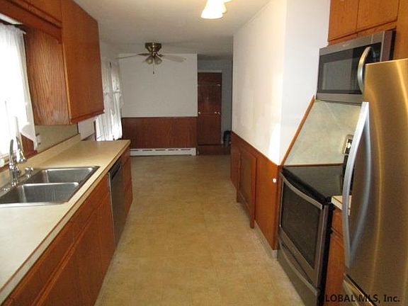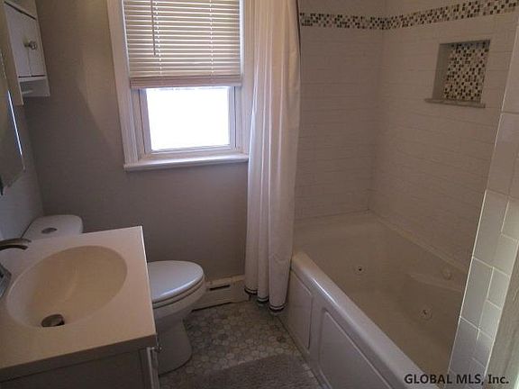 Charming Guilderland ranch which features 2+ good size bedrooms with lots of closet space, modern full bathroom with whirlpool tub and marble tile, galley kitchen with cabinets to the ceiling and stainless steel appliances, large living room with gas fireplace, full half finished basement with laundry area and extra bedroom/bonus room, loads of attic space for storage, huge fenced in backyard, 1 car attached garage, turn around driveway and much more!!! EZ 2C anytime!