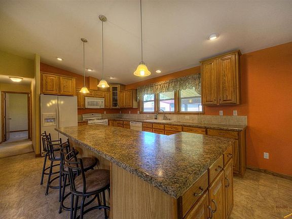 A beautiful home with a lot of shop space on a fenced level lot. Indoor parking includes 2 car attached 23x25 heated garage. L-Shaped heated Pole barn with concrete floor and wall air conditioner includes 26x40 shop and a 22x32 Shop. In addition to a 10x14 Shed and green house. All this on a half acre with a covered concrete patio, lots of RV and Boat Parking. The home is 3 Bedroom and 2 full baths. The master suite has a soaking tub and separate shower. Enjoy cooking and meal time in the huge kitchen with island, breakfast bar and adjoining dinning room. This is all open to a 14x22 living room with vaulted ceiling. The seller is offering a $1500 carpet allowance to buyer at closing.