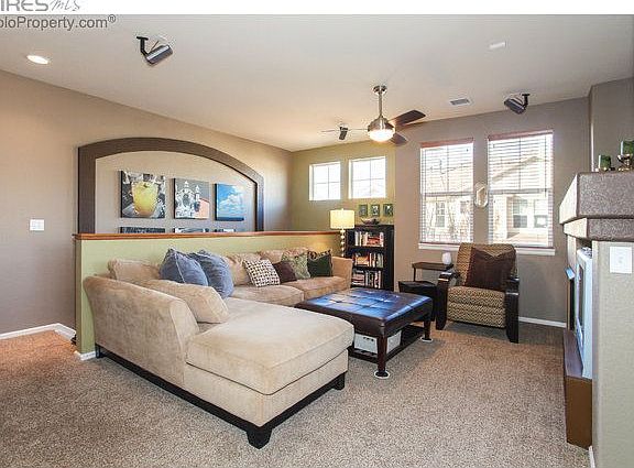Stylish 2nd floor loft w/ 2 balconies offering park/ mtn views. Oversized att 2 car garage with generous storage. Features incl maple cabinets, kitchen wood flooring, tile countertops, newer dishwasher & kitchen faucet, gas stove, under counter lighting, ceiling speakers, gas frpl, tankless hot water, new carpet & jetted tub. Community offers pool, parks, playground, clubhouse & close to schools & Front Range shopping/restaurants. Possession approximately April 7, can close/rent back sooner.