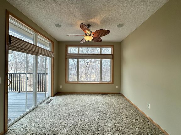 Rare end-unit luxury 3 bedroom, 4 bath townhome with walkout lower level and views looking at the woods and wetland. Former Wensmann model home. Spacious master suite with tub, shower and a large walk in closet. Open floor plan with maple woodwork, maple built-ins and two fireplaces. The kitchen, complete with a breakfast bar, maple cabinets, granite countertops and stainless steel appliances. Cozy four season porch leads to the deck. Great location south of 42 & 21 with easy access to Hwy 169 or 25. Blocks from The Wilds, Prior Lake, Mystic Lake & shopping.
