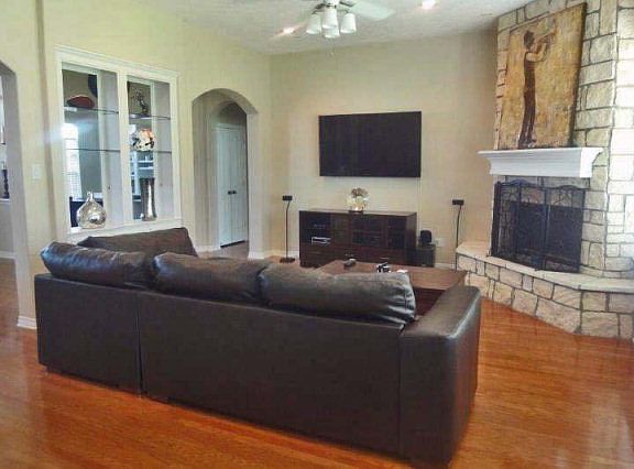 Light & bright home w/ the liv area & luxurious master bedrm downstairs & 2 full bedrms upstairs. Master bathrm has Jacuzzi tub, separate ceramic shower, dble sinks & walk-in closet. Special touches in the open liv area w/ high ceilings & fp. Home also has formal dining, study/office w/ built-ins, an open kit area which is ideal for entertaining that has granite countertops, island, walk-in pantry & bar area, a breakfast area & an inside laundry rm. Outdoor area has a manicured Zoysia grass lawn