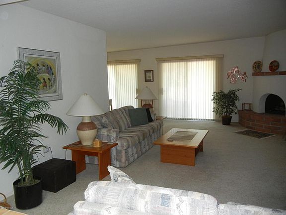 Spacious, Miramar floor plan - ideal for year 'round or seasonal residence. Inviting home, neutral colors, well-positioned windows & skylights make it light & inviting. Enjoy morning coffee on the side patio or bkfst nook, complete with views of the Santa Rita Mts in the background. Kitchen is well lit a cheery w/ample counter & cupboard space. The living room has a kiva fireplace plus a lovely view of the bckyrd & desert thanks to expansive windows & patio doors opening to the back patio & sundeck. Master Suite is separate from the guest bedroom/hall bath. Guests will love their pvt cvrd patio, mt & neighborhood views. 3 cvrd patios, assure you can enjoy shade any time of the day. EZ care landscaping. Great location. HOME SWEET HOME!