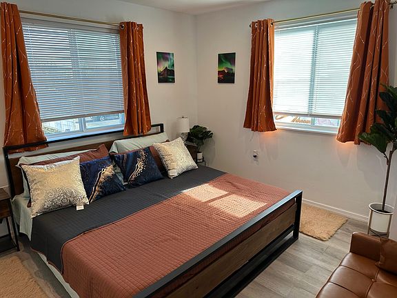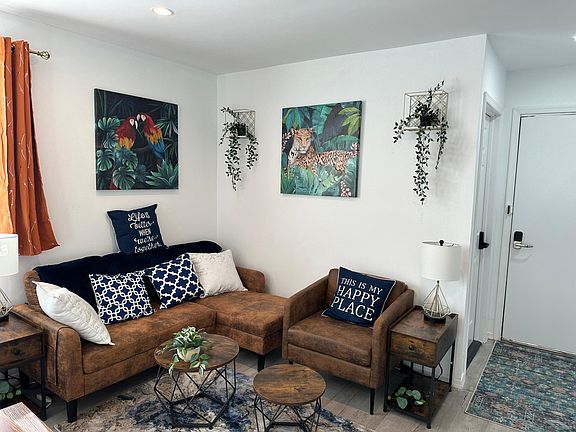 Brand new beautifully fully furnished and ultra-modern two-bedroom, one bathroom apartment. The kitchen is equipped with all modern appliances and opens up to the dining area and living room which has a 70" flat screen smart TV. There are also large windows throughout that allow for plenty of natural sunlight. The bathroom has a walk in shower and lovely double vanity sink. The washer and dryer are located inside the apartment. Last but not least, there is a fun and vibrant deck where you can relax in the sun. Utilities, cable, and Wi-Fi are not included. NO SMOKING OR PETS ALLOWED. Utilities, cable, and Wi-Fi are not included.NO PETS OR SMOKING ALLOWED.