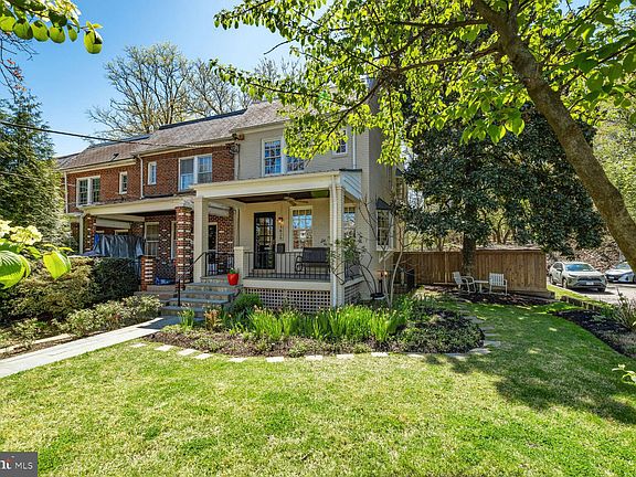 Welcome to this spectacular end-unit rowhome in a coveted location backing directly onto Glover Archbold Park! This sunny and expanded home features 3 bedrooms up with an owners' suite addition with floor-to-ceiling windows overlooking the greenery of the park and a balcony to commune with nature. The ensuite bath, tiled in white with striking Mediterranean blue glass tile in the shower, has a "moonroof" to the sky! A second full bath up services the two additional bedrooms. A nook for a desk on the landing is perfect for homework or working from home. The main level features a spacious living room with a deep bay window, a flexible dining/breakfast room open to the updated kitchen with stone tops, and a family room with a fireplace. The lower level has a rec room with ceramic tile, an expanded laundry area, a full bathroom, and a side exit to the yard. Outdoor amenities include a welcoming covered front porch, a rear deck with grilling space directly off the main level, and steps to the fenced and ample yard with a shed. The blooming landscape delights with daffodils, roses, hydrangeas, and other hardy perennials for delightful curb appeal! The corner location also sides to the street/walkway access directly into the park, resulting in extra parking. Hardwood floors throughout the main and upper levels, new exterior paint. See the open house tab for upcoming open houses.