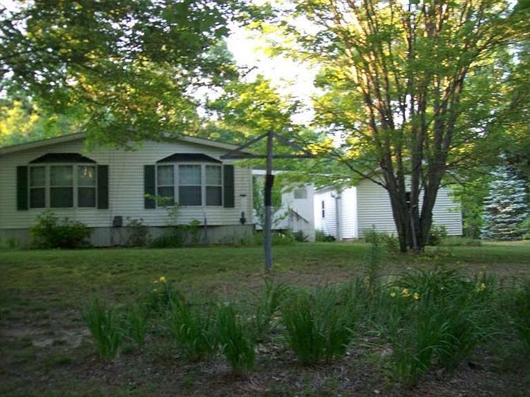 2 bedroom 2 bath home in country setting but still in Fremont School district. Master bedroom has master bath which includes double sinks, garden tub, skylight above, 3 season front room. Home has central air and newer furnace. Dining room windows offer beautiful view of your flower garden. Access ramp to back door. Garage to store goods and park your vehicle. 880 acres of Manistee National Forest across the street.