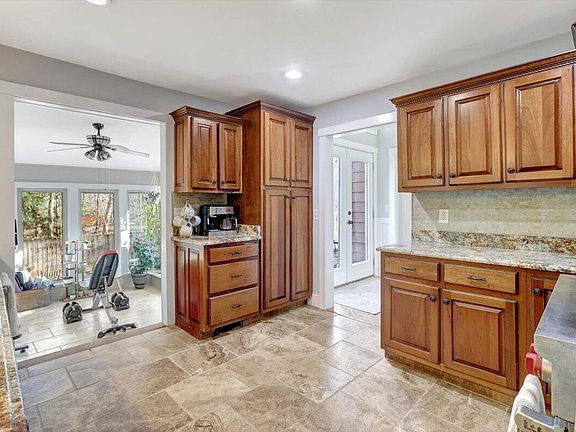 With two spacious master suites, this home offers ultimate flexibility and comfort. An additional two bedrooms are connected by a Jack-and-Jill bath, complete with a jetted tub and a granite-topped vanity. The main-level master bath is a spa-like retreat, showcasing a floor-to-ceiling marble shower and a dual vanity with granite countertops and custom cherry cabinetry.