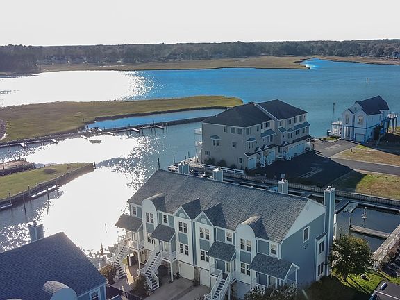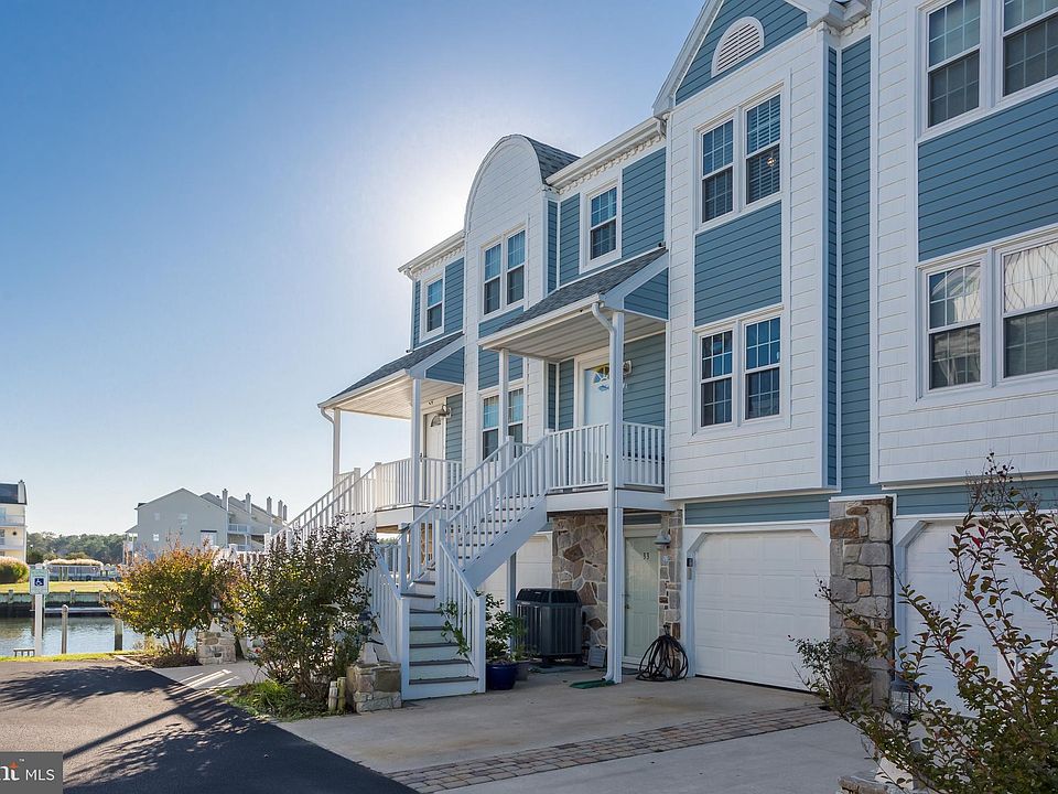 Unparalleled picturesque sunsets in this direct waterfront Bethany Marina Townhome. Experience your coastal getaway with upgraded deep mahogany colored hardwoods, beautifully appointed custom window treatments, and the recent addition of two gas fireplaces, one on each the first and second level. The first floor also features a large living area that can also be utilized as a third bedroom/sleeping area, full bathroom, and one car garage that includes a power hoist, convenient for lifting jeep caps, paddleboards, or any other beach life accessories. Walk upstairs to the second floor where you will find the open concept living area with oversized sliding glass doors to take in a bigger view of the scenic bay. Also on this floor is the kitchen with upgraded countertops and dining/eat-in area. The third floor boasts the master bedroom suite that features a west orientation with a sliding door that opens out onto a private balcony. Look out onto the water as you fall asleep and then again as you wake up. Park your boat here as this home also conveys a deep water deeded boat slip that includes shore power to accommodate larger vessels. Easy access to the Indian River Bay and Ocean. Bethany Marina is a short drive to area beaches, State Parks, golfing, shopping, and restaurants.