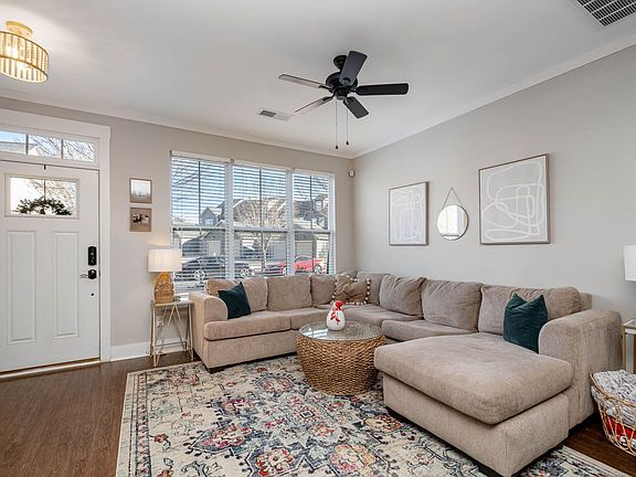 Charming 2 bed/2.5 bath townhome rental located in the desirable Brightwalk community, less than 5 miles from Uptown. This modern unit in the Camp North End area features upgrades & updates throughout including breathtaking wood floors, new fixtures & custom finishes. The main floor is open & light filled, welcoming family & friends in! The living room showcases a stunning accent wall surrounding your fireplace, & is open to your true chef's kitchen complete with a custom backsplash, SS appliances and an expansive breakfast bar for dining! This is open to your dining area and the large glass doors leading you out to your expansive patio & detached garage. On the second level, you will find your primary suite, complete with an enviable en-suite featuring dual vanities, a stand-alone shower & spacious closet. The laundry room and loft/flex space finish out the second level, and on the top floor, you will find the secondary bedroom & bathroom, providing privacy for everyone!