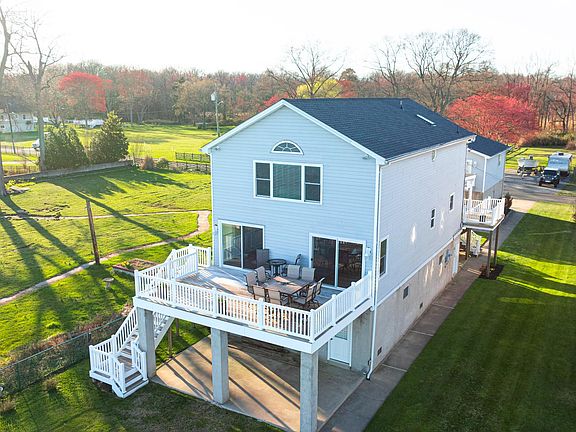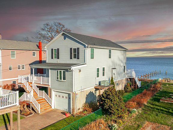 Welcome to your waterfront oasis overlooking the breathtaking Chesapeake Bay! This exquisite 3-bedroom, 2-bathroom home is a water lovers paradise, featuring stunning water views from almost every room. The open floor plan is perfect for entertaining, with a spacious dining room, a cozy breakfast bar and an oversized kitchen equipped with modern appliances and ample storage space. Natural light floods the home, highlighting the elegant finishes throughout. Enjoy the convenience of a 2-car attached garage and a separate 2-car detached garage with an in-law suite above it, providing additional living space or guest accommodations. The expansive yard offers plenty of room for outdoor activities and relaxation, while the adjacent lot included in the sale across the street provides extra parking or the potential for future expansion. ( Additional lot is parcel # 1504203071 ) Escape the hustle and bustle of city life and immerse yourself in the tranquility of waterfront living. Don't miss this rare opportunity to own a piece of paradise on the Chesapeake Bay! Average depth at pier fluctuates between 4ft- 5ft or higher at times.
