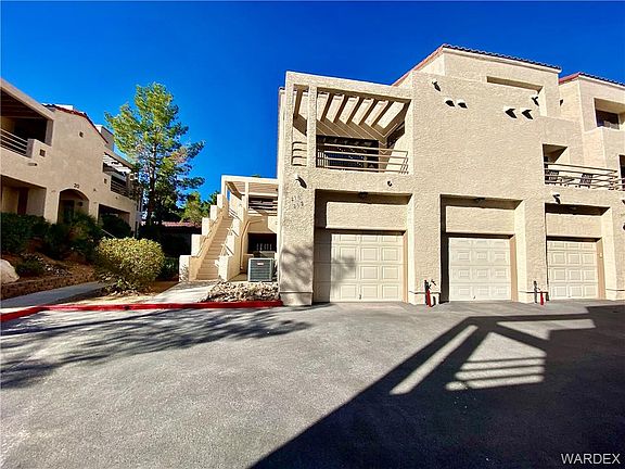 Wonderful 2 bedroom 2 bath Laughlin Bay Village beauty. Recently updated and ready to move in! Ever wondered what it would be like to live along the tall, cool pines and lush lawns in Laughlin? Well here is the answer! Enjoy the amenities offered with this upstairs huge condominium complete with garage. Large open floorplan with lots of light. Desirable end unit location, lots of windows for great views of the surrounding areas. Two bedrooms two baths on main level and then upstairs a loft that could be a game room, office or even a third bedroom! Vaulted ceilings throughout give you that feeling of size and space you're looking for. Kitchen has tons of counter space & cabinets for storage, separate dining area with lots of room to move! Large patio off of living room is perfect retreat for some fresh air. There are four pools and spas in the community of Laughlin Bay Village where you have peace of mind with gated security. HOA dues are $260.00 per month. HOA includes water, trash, sewer, exterior bldg & common area maintenance.