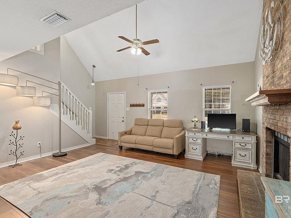 Welcome to 3827 Isabel Way W. - a move-in ready 3 bed, 2.5 bath cottage-style home in the desirable Vista Ridge subdivision. Located near shopping, schools, restaurants, and with easy access to I-10. This home features a split floor plan with the primary suite on the main level, complete with a spacious bath, whirlpool tub, large shower, and walk-in closet. The living area offers soaring ceilings and a cozy wood-burning fireplace. Upstairs, one bedroom features a walk-in closet, while the other offers ample closet space. The open-concept kitchen and dining area includes all appliances, with a new dishwasher (2024) and washer/dryer (2023). Enjoy the private, fenced backyard with a large deck under mature oaks and a welcoming front porch. Bonus 317 sq ft storage/flex space off the carport - suitable for a home gym or office. Just 20 minutes from U.S.C.G. ATC Mobile. Buyer and/or Buyer’s agent to verify all information Buyer deems important. Buyer to verify all information during due diligence.