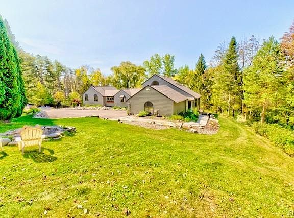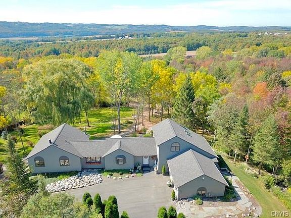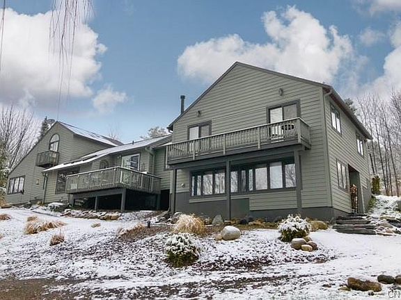 COMPLETELY REMODELED elegant country home. All furnishings negotiable, for a turnkey property. At home office (2) potential/ VRBO/ rental income potential. Or run your small business from separate side entrance. College grads/ in law quarters possible. Experience country living to the fullest with 4 acres including a stream winding its way alongside a 12x12 cabin. Sunken Dining Room with large beamed windows. 2 Spiral staircases leading to upper & lower levels. Kitchen with high end cabinetry, stainless appliances, copper farm and prep sinks. Full wall of built ins. Sliding glass door leads to one of three decks. Upper master bedroom has walk-in closet/balcony and bathroom w/ soaking tub/shower and double vanity. Living Room pocket doors lead to a beautiful room w hardwood floors; double sliding doors leads to a full length balcony. Family room has a magnificent wood burning stone fireplace A full wall of windows overlooks the entire property with a private entrance. This home has endless possibilities.