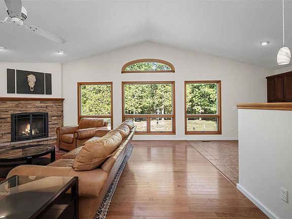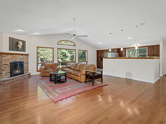 - Eat-in Kitchen, Solid Surface Countertop(s), Kitchen/Dining Room Combo, Bookcases, Cathedral Ceiling(s), Open Floorplan, Vaulted Ceiling(s)