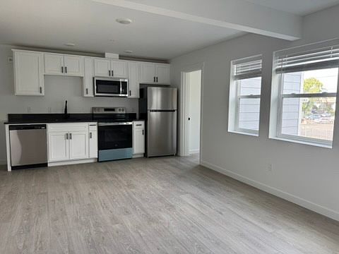 Big open two bedroom unit with gorgeous contemporary finishes. High ceiling and lots of windows make this unit bright and lofty. Sleek new flooring throughout. Kitchen with quartz counters, all new stainless appliances including a dishwasher and microwave hood. Two generous private bedrooms. On demand H2O. W/D hook-ups in the unit. Onsite coin op laundry also available. Terrific location near public transportation and across from the Foster food cart pod. Tenants pay electricity. Water, sewer, and garbage are included in the rent. Cats ok. No smoking. Not a type A accessible unit.Renters insurance required. Go to the High Five Properties for disclosures and applications. Screening fee is $50 per person. One year lease. Tenant pays electricity only. Water, sewer, and garbage included in the rent.. Cats ok. No smoking. Not a type A accessible unit. Renter's insurance required. Go to the High Five Properties for disclosures and applications. Screening fee is $50 per person.