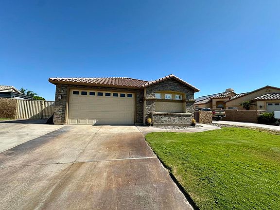 Welcome to this stunning 3-bedroom, 3-bathroom home in the highly sought-after River Estates Community, just a short walk from the Colorado river. This beautiful property offers an exceptional layout, featuring a private casita with its own bathroom, walk-in closet, and separate entrance, making it ideal for guests, extended family, or a rental opportunity.The home sits on an extra-large 0.30-acre lot, providing endless possibilities for expansion, recreation, or customization. The backyard is an entertainer's dream, featuring a horseshoe pit, pergola, covered back patio, concrete pad for trailer parking and a storage shed all within the privacy of a block wall enclosure.Inside, you'll find modern paint, updated flooring, and a cozy fireplace, creating a warm and inviting atmosphere. The inside laundry room adds convenience, while the tiled roof and two-car garage enhance durability and functionality.Energy efficiency is a standout feature, with solar panels covering 100% of the electricity bill (buyer to verify) a huge benefit in the summer heat, minimizing or even eliminating Edison bills.Located in a gated community with low HOA fees, this home offers both privacy and exclusivity, making it perfect for those who love to entertain or simply enjoy a peaceful lifestyle.