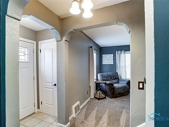 Charming West Toledo home lots of updates on completely fenced lot Separate tiled entry, remodeled kitchen new counters, s/s appliances, wood floor, tile backsplash, snack bar & pendant lights. Living rm cove ceiling & dining rm hardwood floor & cove ceiling. Gorgeous 3-season sunroom remodeled in 2018 slider to backyard deck Large finished bsmt glass block windows serves as cozy family rm built-in bar, half bath, storage area & laundry cabinets & utility sink. Huge master large closet. Spacious remodeled full bath. Newer carpet, replacement windows, A/C & Furnace 2010