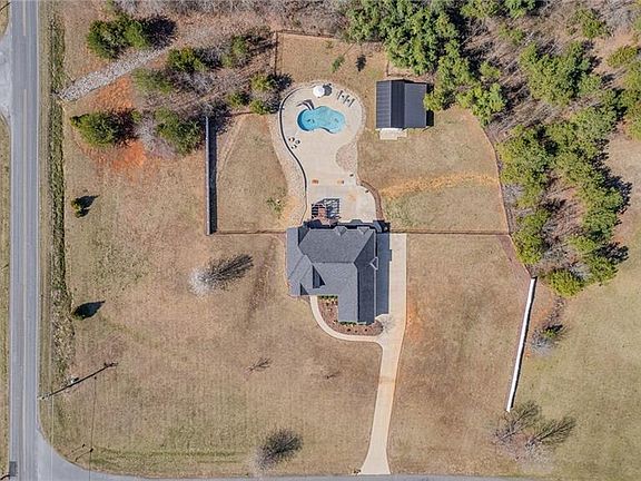 Stunning custom-built home offering plenty of space with upgrades throughout! Fresh interior, garage, and exterior paint enhance its charm. The backyard is an entertainer’s dream, featuring a saltwater pool, hot tub, and outdoor fireplace. A bright and open main living area features gleaming floors, large windows, and rock fireplace, seamlessly flowing into the kitchen and breakfast area. The kitchen is designed for both style and functionality, with granite countertops, breakfast bar, and ample workspace. Primary suite boasts a spacious walk-in closet, large open walk-in shower, and double vanity. Home office features expansive built-in shelving, perfect for organization. The laundry room includes extra storage and built-in dog kennel for added convenience. Bonus room above the garage with a half bath provides additional flexibility for an office, bed or craft room. Detached metal building with roll-up door and electrical offers endless possibilities. Don’t miss this incredible home!