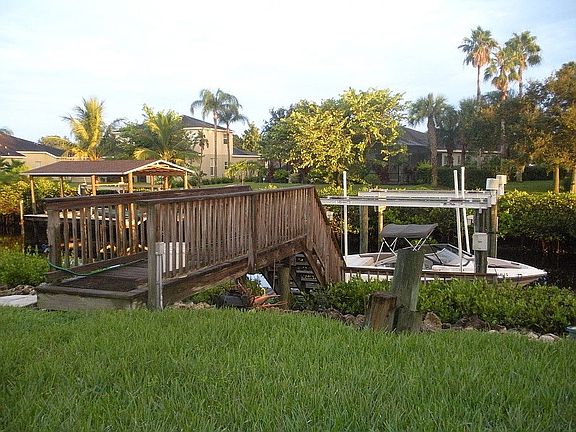 Boater's dream home: 3 Bedroom with Den (or 4th Bedroom/Living Room) on salt water canal with 12000 pound boat lift and dock. Less than 5 minutes to open water without any bridges and 15 minutes to Gulf of Mexico. Large patio/screened in lanai with sliding glass doors overlooking boat dock and canal. Large 2 Car garage. All floors are uniformly tiled with accent borders. Huge master suit with his/her closets. Large master bathroom with his/her vanities, large standup shower, plus Roman tub and makeup area. Huge great room with trayed ceiling formal dining room. Kitchen has breakfast bar and separate eat-in area. Separate washer/dryer room in the air conditioned area. Entire home has high ceilings with fans throughout. Community includes boat launch ramp. Entire interior of home including ceilings has been freshly painted a month ago.