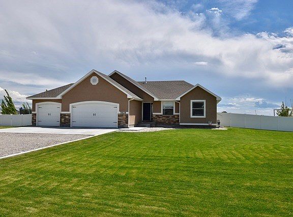 Motivated seller!!! Welcome home to this immaculate property on 1 acre! This gorgeous stucco and stone home features a beautiful spacious kitchen with custom cabinets, granite counters, stainless steel appliances, large center island, huge dining area and beautiful tile floors. You'll love the open floor plan with great room concept and lots of natural light throughout this well maintained home. Spacious master suite features crown molding, a luxurious master bath with gorgeous custom cabinetry, granite counters, jetted tub with separate tiled shower, tile floors, and large walk in closet. Additionally located on the main floor are 2 bedrooms, a large bathroom with tiled floors and beautiful tile surround, mud room with wainscot and sitting bench and main floor laundry room. Downstairs features a cozy family room with gas fireplace, two more bedrooms and an enormous bath with tile floors and tiled tub surround. Attached 3 car garage, fully fenced yard, 1 acre, sprinkler system and maintenance free exterior! Come check this beautiful home out today!