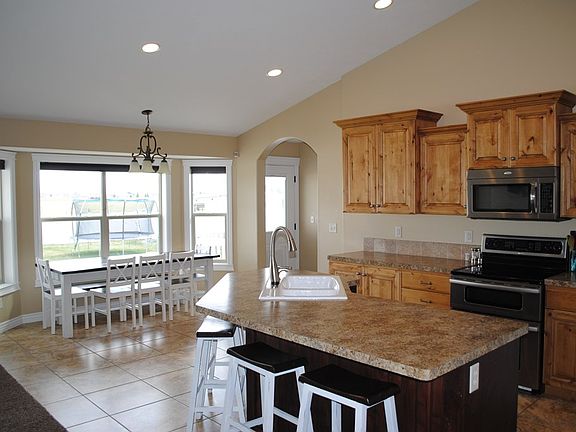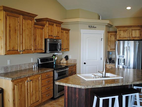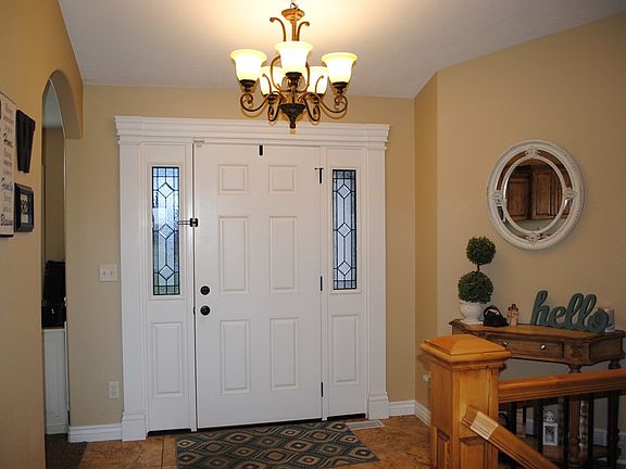 Beautiful Custom open floor plan! Beautiful open kitchen for entertaining, Vaulted Ceilings, Main floor, den, office, or formal living room, main floor family room with beautiful fireplace insert. Main floor laundry with laundry sink, Master bedroom with tray ceiling, walk in closet. Master bath with custom tile shower with two shower heads, and double sinks. 5 additional huge bedrooms. Large great room in the basement set up as theatre room, and addition seating around a second fireplace insert with a beautiful mantle. Huge storeroom with additional food storage room containing built in shelves. The basement is fully finished. Bathrooms are all custom beautiful bathrooms. Home features and oversized 3 car garage with built in cabinets. Huge Rv parking area. The back yard is fully fenced with additional space and grass on both sides. Storage shed. Mature trees on West boarder, full sprinkler system front ad back. This home has been very well taken care of. Hot tub on patio included. Schedule your personal showing today!