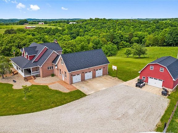 Welcome to this JUST LISTED Country Estate. Comprised of 27 acres this MODERN FARMSTEAD offers a gentleman's farm for enjoying the beauty of the countryside or a flourishing opportunity for living off the land. You will have a wonderful sense of arrival as you approach the over 6800 square foot home, garages, guest accommodations, barns and sheds which are complimented by wide open spaces, sky line, pastures and pond. The front and back covered porches become extended living for entertaining or enjoying sunsets. The entry hall leads to two story great room with thirty foot tall brick fireplace that is the heart of the home. Monochromatic kitchen with center line design work island and new appliances. The first floor owners wing en suite is generous with custom walk in closet. Four additional guest accommodations and four full baths.Lower level features media / family room with handsome stone wood burning fireplace, wet bar and safe room. Free gas, public water and full house generator add to the comfort and efficiency. Style, good taste and upgraded move in condition. Did I mention fruit trees? A list of current updates are available. The protection of a HOME WARRANTY.