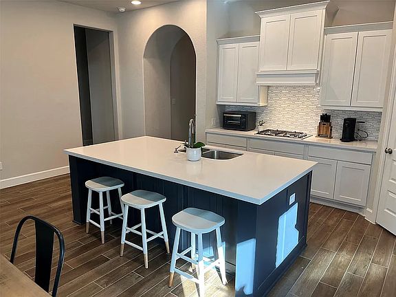Stunning 4 bedroom, 3 bath home in desirable Wolf Ranch subdivision. Amazing master bath, with dual vanity, spa like soaker tub, and stand alone shower. The connected his and hers closets will astound you with the amount of storage space! One of the three guest rooms provides a en-suite bathroom and walk in closet. Work from home? You'll marvel at the beautiful private office with French doors. Love to cook? This home's gourmet kitchen has everything you need. Gas top range, built in oven, and an oversized island for prep-work. Storage abounds through the home. The separate laundry room provides a washer and dryer (included) and built in storage cabinets. Enjoy your private covered patio and yard in the evenings as you wind down from a long day! This home is a must see- tile throughout, freshly painted cabinets, and a finished garage. Turn key and ready for your family!