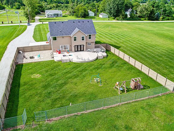 Amazing 2 Story, nearly 2,800 SQFT, 4 bedrooms, 2.5 baths, on a gorgeous 4.45 acre lot, 2 car attached garage with Tesla Charging Station and a 40'x80' split block building, located in Northwestern Local School District. Wrap around covered front and side porch, 2 story open foyer with open staircase. Huge open floor plan kitchen, living room and dining space. All new in 2022 & 2023 HV/AC, home connected to natural gas, kitchen, all flooring, paint, concrete approach to garage, deck sealed, new gravel driveway from road all the way to the barn installed, all down spouts buried and ran to ditch, NEW Roof July of 2023 and so much more. Master bedroom has vaulted ceilings, giant walk-in closet, private office or nursery, en-suite bath has corner jacuzzi with large window overlooking the back yard. The 3 additional spacious bedrooms with ample closet space. When you go out the back door you will walk out on to an 30'x50' deck, with 1 acre of fenced back yard between house and building, to the east of deck there is beautiful hard scape landscape currently used for a fire pit but has wiring and concrete pad for a hot tub. Split block building has separate sub station with 200 amp and 100 amp panels installed, rough framed on one end of building, allowing for a loft and possible added living space. Don't miss out on this amazing property in the country.