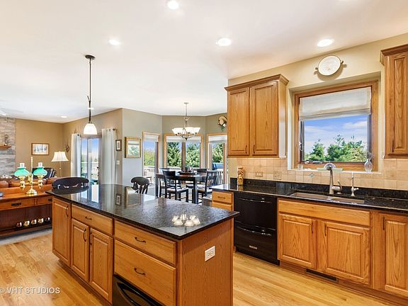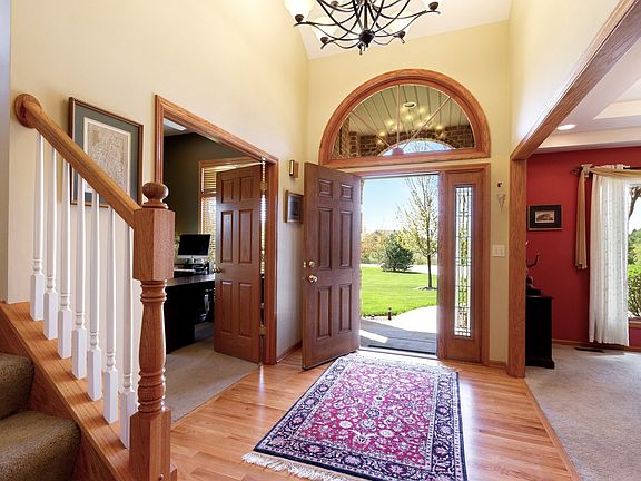 CUSTOM 2 STORY OFFERS A TRANQUIL SETTING ON 3.15 BEAUTIFUL ACRES IN FOREST RIDGE ESTATES OF SPRING GROVE. This thoughtfully designed home features a spacious foyer with volume ceilings and hardwood floors that introduce the formal dining with tray ceiling, and doors that lead into the office. The bar area is stunning with its custom cabinetry and hammered copper sink. The living room and family room each have a fireplace and take you out to the deck & backyard with brick paver patio-wonderful for entertaining. The well equipped kitchen is dressed with granite counters, a tile backsplash, and plenty of cabinetry fitted with pull out shelving and endless storage. Upstairs is home to four spacious bedrooms each offering a full bath and walk-in closet. The master suite showcases a fireplace, tray ceiling, large walk-in closet, and a lux master bath with double sink vanity, separate shower, soaking tub, and water closet. A meticulously cared for home and true pleasure to see!