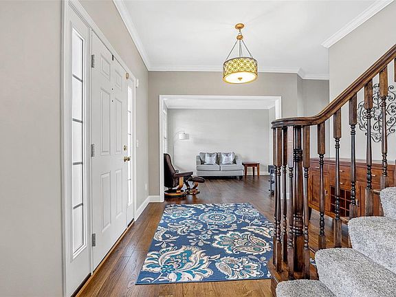 Welcome to this beautifully updated 2-story home in the sought-after Woodlands at Bear Creek subdivision, providing an ideal setting for comfortable living and entertaining. This home boasts 4 bedrooms and 3.5 well-appointed bathrooms. A complete kitchen rehab includes all newer appliances, making meal preparation a breeze, with high-end finishes and plenty of counter space for culinary creations. Newer engineered wood flooring on the main level adds warmth and sophistication to the living spaces. The family room features custom shelving, perfect for displaying treasured items or organizing your entertainment center. Crown molding graces the main floor and extends up the staircase, adding a touch of luxury to the bedrooms. The basement provides additional living space which is perfect for a home office, gym, or entertainment room. Enjoy evenings under the stars with professionally installed backyard landscape lighting, creating a serene and enchanting outdoor space.