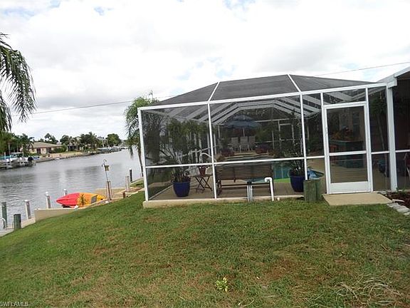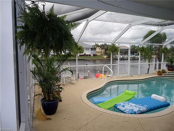 This duplex has a Gulf access canal view from the screened pool lanai. It's a two bedroom two bath large unit with tile throughout. Open kitchen, large living room, sliders to the lanai and pool. The screened lanai, dock and gorgeous view is shared with the right side. Left side pays water and the right side pays electric for the pool. Great location in the SE off Del Prado and overlooking the Rubicon canal with wide views. At this price it won't last long so drive by and make it your new address today. Easy to show. Lawn and Pool care included in the rent.