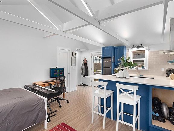 Newly built (2019) ADU available on July 15th. The main house is rented out separately. This property is in the Brooklyn neighborhood, nestled between Powell Blvd, McLoughlin Blvd, and the Max orange line. It's on a very quiet street, without any houses on the opposite side of the street. The ADU is a stand-alone studio with no shared walls. The space: The address is 3828 SE 13th Ave, 97202. The ADU is a 350-square-foot studio. It has a private 270-square-foot wrap-around deck. There is a private 7 x 7 x 7 shed in the backyard for the tenant of the ADU. The washer and dryer are located in a storage unit that is attached to the ADU. There is no direct access from the ADU to the storage unit - you must walk outside to access it. The washer/dryer are shared by the main house and ADU. Besides laundry access, the storage unit is reserved only for the tenants in the main house. The front and back yards are common spaces for all tenants. The backyard is fully fenced in. There are three raised garden beds to be shared between the tenants. There is ample on-street parking. The ADU is not furnished. It includes a range (oven and stove top), refrigerator, and two bar stools. (The refrigerator is larger than the one shown in these pictures). Heat and A/C are on the same mini-split unit. Lease details: $1,425 per month + $150 for all utilities (electric, water, trash) - TV/Internet is tenant's responsibility $1,425 deposit (fully refundable) Initial term is a one-year lease, with the option to extend the lease on a month-to-month basis after the initial term. Minimum credit score of 650. Income must be at least 3x rent ($4,200 per month). Maximum occupancy = 1 person. Pets to be considered at owner's discretion No smoking of any tobacco products anywhere on the property. Pre-screening requirements include: background check, credit check, confirmation of employment, and references from prior/current landlords Renter's insurance required. Application fee = $35
