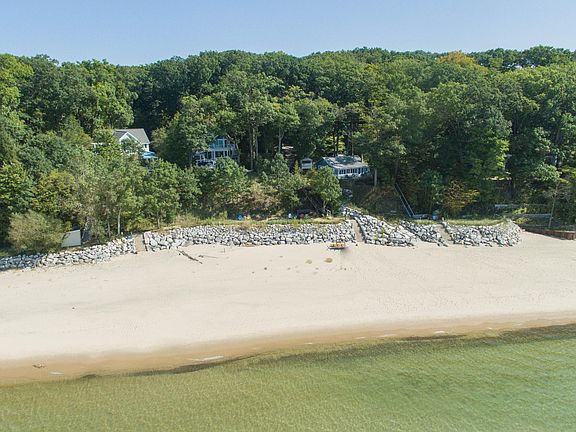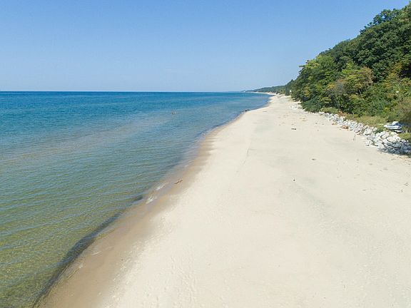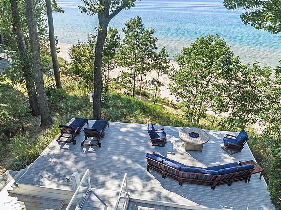 Experience the pinnacle of luxury on Lake Michigan with your own 95 feet of lake frontage. Nestled on a one acre wooded lot, this 6 bedroom, 3.5 bath home offers a serene escape, complete with an expansive sandy beach with riparian rights, a low bluff, and the ability to walk for miles in each direction. Designed for the discerning buyer, the home effortlessly blends elegance with coastal charm. No detail has been overlooked including hardwood flooring, granite counters, and custom built bunk rooms. The outdoor living spaces are unparalleled, featuring multiple decks perfect for entertaining and soaking in the sunsets. The all season porch with fireplace is ideal for winding down after a fun day on the beach. Ample storage ensures space for all your beach toys, paddle boards, & jet skis.