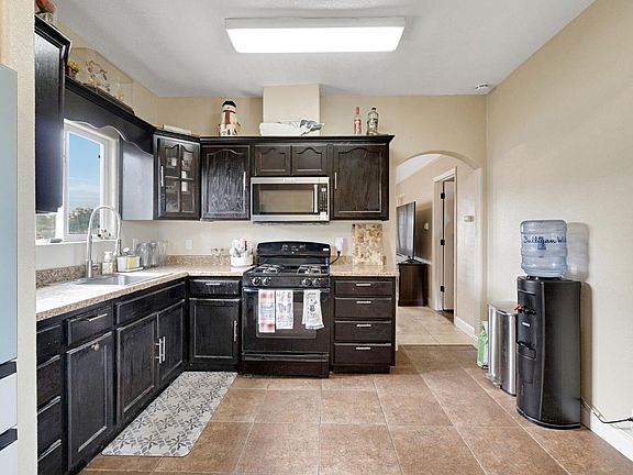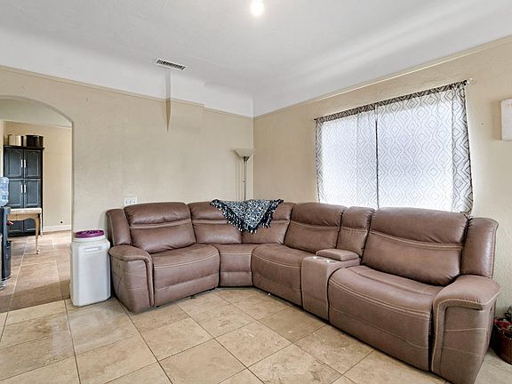 This two bedroom one bathroom home boasts the feel of country living in the city. Upon entering the property you will notice the cute front porch. You enter into the living area complete with laminate floors. The home has laminate/tile throughout, not carpet! To your left is the first bedroom which shares a jack and jill bathroom with the second bedroom. Further into the home you have your kitchen with eat in dining area. There is a flex room beyond the kitchen that has an indoor washer and dryer space.The oversize lot gives ample room for gardening, play structures, a pool, the possibilities are endless. There is a detached garage and a security fence in the front. All of this in close proximity to shopping and schools.