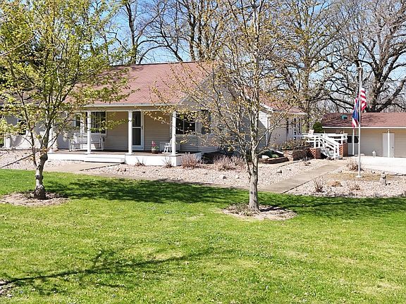 Welcome to your serene retreat situated on 3.98 acres of peaceful woods, showcasing a delightful 4-bedroom, 3-bathroom ranch-style home bursting with character at every turn. You will enjoy the scenic walking paths, and enjoy moments of outdoor bliss on your inviting front porch, by the crackling fire pit, or on the expansive back deck perfect for grilling. Inside, be greeted by arched doorways and a harmonious blend of timeless charm and modern comforts. Indulge in culinary delights in the eat-in kitchen boasting beautifully preserved cabinets from 1917, complemented by a spacious dining room and a cozy office space. The primary bedroom boasts ample space, featuring a walk-in closet and an en-suite bathroom for added privacy and convenience. The finished basement offers versatility with a recreational space and full bathroom, while the presence of a Generac generator ensures unwavering peace of mind. With over 3,000 finished square feet and a 4 car tandem detached garage, there's plenty of room for all your aspirations. Schedule your tour today and embrace the charm of this exceptional retreat.