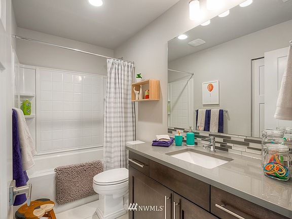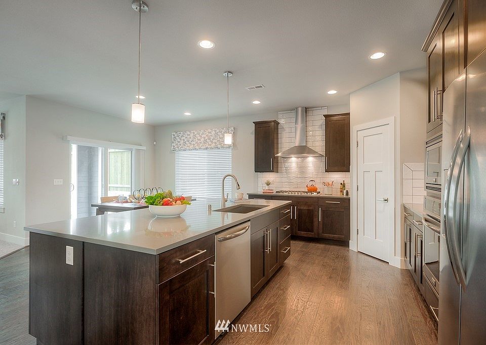 Banyan Grove is nestled between Fernwood Elementary & North Creek High. An enclave of 25 highly appointed homes ranging from 2,339 - 2,703. sq ft. The Kimball offers a bedroom & bath on the main floor, large great room with gas fireplace, open loft and tech niche.Gourmet kitchen has quartz counter tops, under mount stainless sink, extraction hood over gas cook top, pendant lights over large island. Covered rear porch. Smart home- included, pre wire for A/C.Complete home! REFRIGERATOR included!