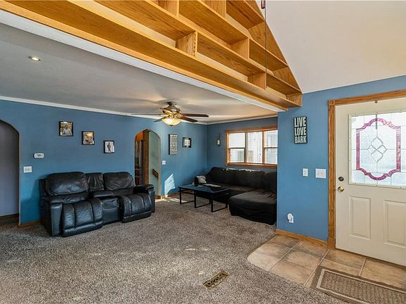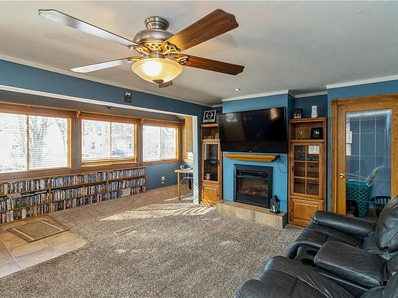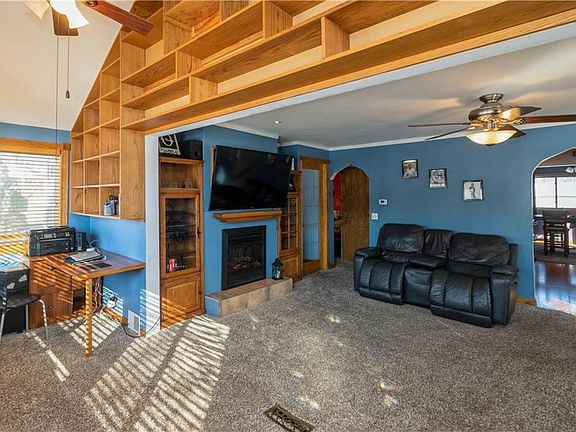 This home features a large master bedroom with custom blinds, and 2 additional good-sized bedrooms with nice-sized closets for storage; open entry area and great room with oak trimmed windows and custom blinds, built-in shelving and vaulted ceiling makes this open space great for entertaining with built-in storage on either side of the electric fireplace. To finish out the main level is a full bath, dining room, kitchen with all appliances remaining*, steps down to a large entryway with vaulted ceiling leads to a patio with pergola, large fully fenced yard, storage shed, and oversized 2 car detached garage with opener. The lower level includes 1 non-conforming bedroom, walk-in tiled shower bath and soaking sink, laundry area, sump pumps, and lots of storage space.