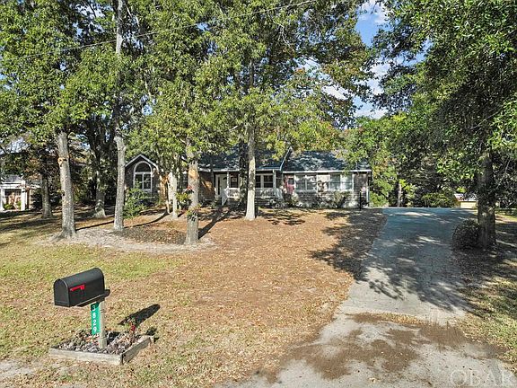 Don't miss out on this charming cedar shake home that embodies the perfect blend of comfort and functionality. Nestled in a coveted canalfront location on over an acre of land, this property offers an expansive yard that invites outdoor activities with an abundance of privacy YET MINUTES TO ALL THAT THE OUTER BANKS HAS TO OFFER! This home features three bedrooms and two full baths, including a spacious private En-suite.  The great room has high ceilings with connecting dining and kitchen.  The covered front and back porches provide ideal spaces for enjoying morning coffee or a glass of wine, all while overlooking the peaceful beautiful scenery. This elevated home features no stairs for easy access, complemented by a two-car garage and large detached shed for your convenience and storage needs. The interior boasts attractive blonde hardwood floors that add warmth and character. Recent newer improvements include a new washer, stove, and refrigerator, hot water tank, roof (2018), septic drainfield replacement, and leafguard gutters ensuring that this home is move-in ready so you can enjoy peace of mind knowing that this home has been meticulously maintained. Don’t let this opportunity slip away—experience the Outer Banks lifestyle you've always dreamed of!