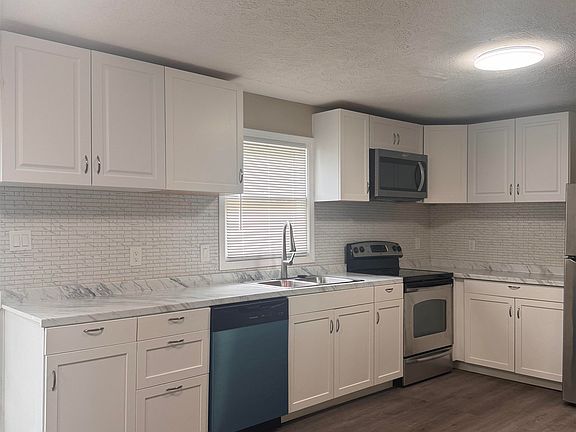 Newly updated and move-in ready! This spacious 5-bedroom, 2-bath home features a fresh renovation with new paint, stylish kitchen cabinets, modern appliances, and refreshed landscaping. The open kitchen and dining area flow seamlessly into a welcoming living room with fireplace and a cozy gathering room perfect for entertaining or relaxing. The main-level primary bedroom offers convenience, while four additional bedrooms and a full bath are located upstairs. A storage garage, fenced yard, and great layout make this home ideal for anyone seeking space and comfort.