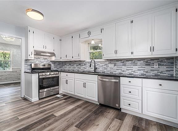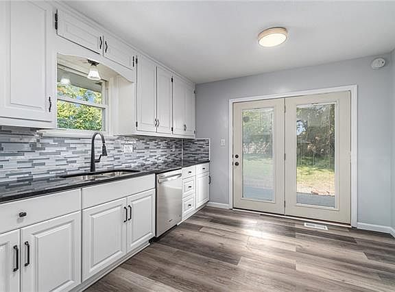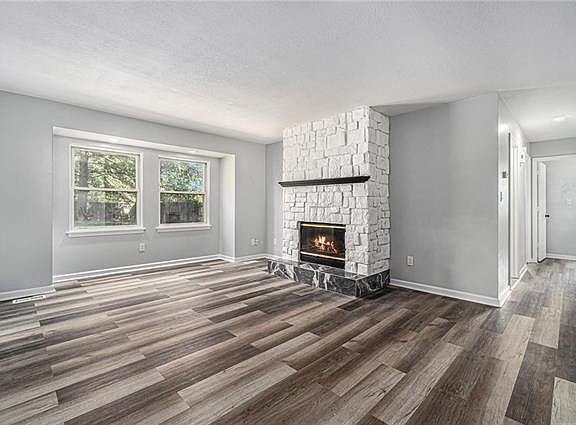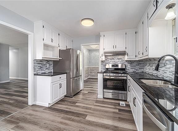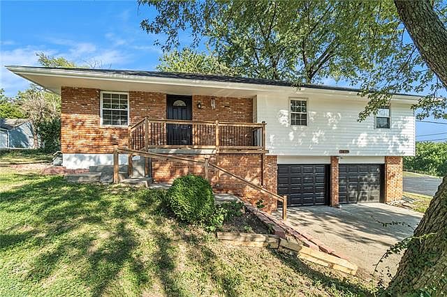 Remodeled & move-in ready raised ranch. Greeted into the main level by an oversized living room w/ fireplace & sightlines to a huge backyard. Walk into a formal dining space leading into the kitchen. The kitchen boasts granite countertops, tile backsplash, white cabinetry, new hardware, and stainless steel appliances including a dishwasher, refrigerator, & 4 burner gas range w/a griddle. Primary bedroom w/ en-suite. En-suite complete w/ tiled shower & new vanity. 2 additional bedrooms & tiled full bath w/ shower over tub complete main level. Lower level finished w/ family room. half bath, & laundry space. Large backyard w/ wood privacy fence. Upgraded landscaping. Low maintenance vinyl siding w/ brick trim. 2 car garage. NKC School District.