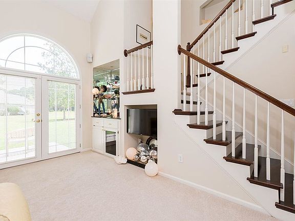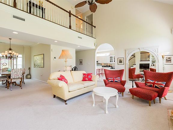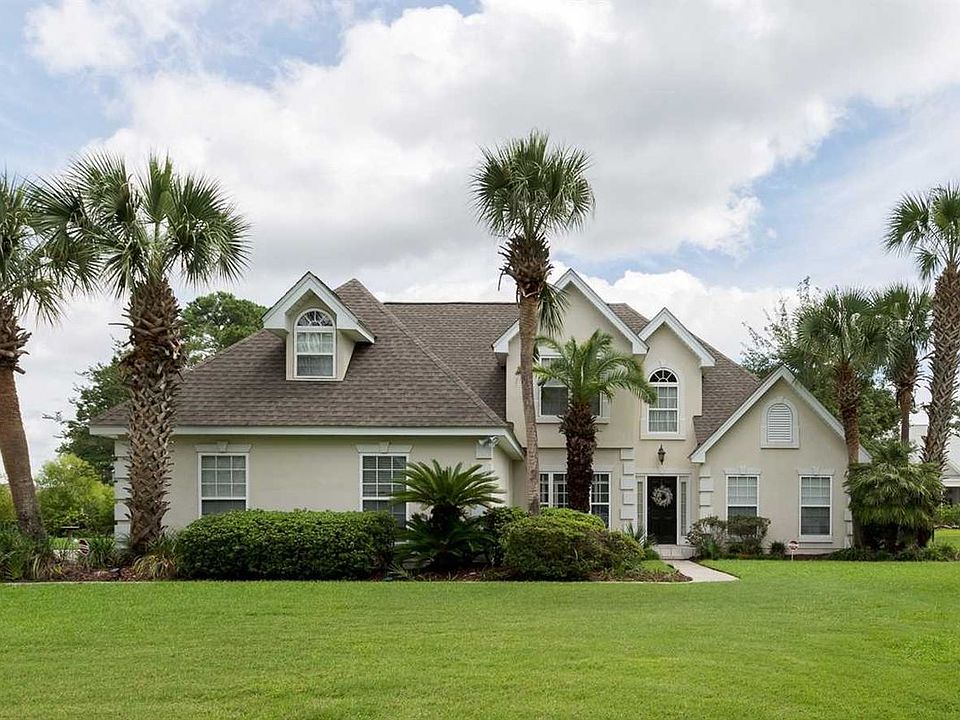 Located on one of the most secluded streets in Plantation Point, this elegant and airy home will welcome you in, and have you stay awhile. No storm damage here! From the front door and foyer, notice the natural light from half-moon windows above the french doors and the cathedral ceiling extending to the open balcony above. Entertain with ease in the great room, at the wet bar, lounge in front of the newly renovated gas fireplace or step outside onto the patio to enjoy a quiet and spacious backyard flanked by pear trees. The lawn also has a newly installed irrigation system and a view of the lake, or even room for a pool. With the master bedroom suite on the first floor, the other three sizeable bedrooms are upstairs, including one which has a sink and outlet wired for small appliances, and another has a vaulted ceiling and view of the lake. The wall-mounted double-aspect fireplace adds a cozy (and romantic) touch to the master bathroom when you are relaxing in the whirlpool tub. The formal dining area is near the front entryway, and the sparkling white kitchen has granite countertops with plenty of room for meal prep, a breakfast bar, and access to outdoors. The powder room is in the hallway just off the kitchen, next to the laundry room, which then leads to the side-load garage with space for two cars and plenty of storage. Other features include: surround sound system speakers installed downstairs, and low maintenance, mature landscaping. Furthermore, you are also only a short drive from the beach and all its attractions, as well as the essentials such as medical centers, doctor's offices, pharmacies, banks, schools and grocery stores. Book your appointment to view this gorgeous home today! All measurements are approximate and not guaranteed.