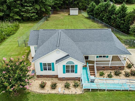 Looking for ALL 1 level? This cute ranch sits on .72 acre and has 3 bedrooms 2 full baths vaulted living/family room and separate dining, everything on 1 level. All 3 bedrooms are great size...with big closets. Open kitchen into the family room. NO carpet in the entire house...some original wood floors, carpet was replaced with LVP, and kitchen and baths have vinyl. Front wrap around porch covering both the front and side entry ways. Back deck overlooks a huge fully fenced in back yard with storage shed. Quiet area just outside of Clayton...minutes from Flowers Plantation. NO HOA, and vacant lot to the left...privacy and peacefulness abounds. Sellers did add wheel chair ramp that can stay or go...master bath has also been upfitted with grab bars.