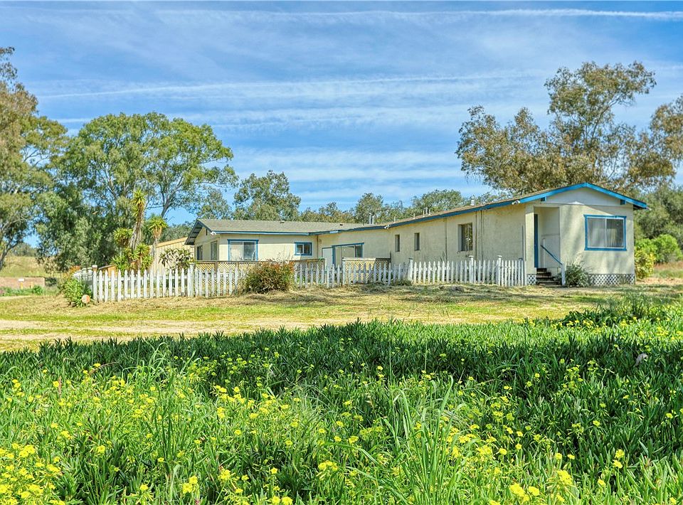 A true "fixer upper", with a white fence. The front part of the house is 16 x 60, back portion is 3 bedrooms and 2 baths. The home has two kitchens. Separate meter for well. Horses allowed. The age of the house is several different years. Metal building is 960 sq. ft. Room for more than one home.