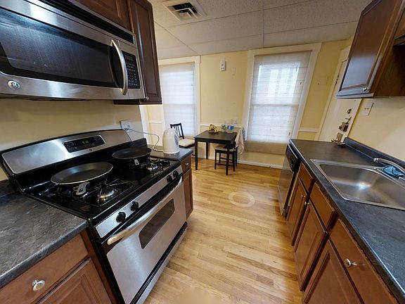 2 bed/1.5 bath (first floor) Updated eat-in-kitchen (modern appliances, granite counters, newer cabinets, etc.) Hardwood floors Bonus sunroom/enclosed porch Shared backyard Coin-op laundry in basement One (1) TANDEM off-street parking spot in the driveway included