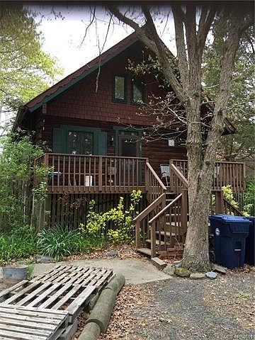 A drastic price reduction made on this unique log style home nestled on an acre+lot and offering a private, tranquil setting, yet close to the bounds of civilization! The home features privacy inside as well with one bedroom being on the lower level and the other on top level with loft space overlooking the living area with its cozy stone fireplace and wood flooring. A detached two car garage provides lots of space for cars and storage, and contains a full teenage or in-law apartment on top for those extended family needs. The home is in need of some cosmetic improvement so bring your ideas and imagination when viewing, to recognize the full potential here, in making this rustic chalet a rare find for the not so average buyer!