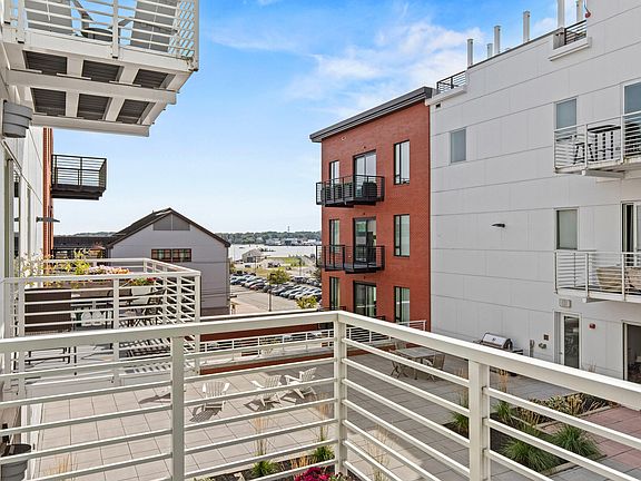 Welcome to a rare opportunity at celebrated Hobson's Landing in the Old Port! This like-new 1 BR, 1 BA unit is one of a select few with an elevated, private deck boasting unobstructed year-round water views of Portland's bustling Casco Bay. Completely move-in ready, you will find this sun-filled condo with elegant finishes has everything you're looking for. This home features a laundry room with storage, a chef's kitchen with gleaming quartz counters, tile backsplash and generous island with seating for 4. Enjoy an open concept living space for the kitchen, dining and living area. The natural gas fireplace adds ambiance to the living room. Sliders off the living room lead to the deck overlooking the well landscaped courtyard, where you can spend hours enjoying the view of the harbor and Commercial Street activities. The primary bedroom has an additional entry door to the bathroom. The tiled bathroom features double vanities, a large walk in shower, and radiant floor heat. Energy efficient heat pumps for heating and cooling keep you comfortable year round. Hobson's Landing is more than a home—it's a community. Amenities unrivaled in Portland include a secure lobby with concierge, a fitness studio, a spacious common area/clubroom with full kitchen, separate co-working space, dog wash, a shared courtyard with gas grills, a reservable on-site guest suite, private storage unit, shared bikes, EV charging stations and a complimentary ride-share vehicle. This unit also comes with one deeded garage parking space ideally located right next to the entry door! With welcoming common spaces designed for convenience and connection, Hobson's Landing offers unparalleled amenities in a location designated as a ''A Walker's Paradise'', with a walkability score of 94! Step outside your door to Portland's celebrated restaurants, galleries and shops on charming cobblestone streets, and the scenic Old Port.