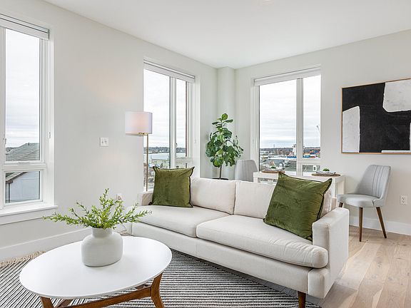 Stunning, sun-drenched corner unit with sparkling water views! Pristine, two-bedroom, two bath condominium at Hobson's Landing boasts customization throughout. Ensuite primary bedroom with spacious walk-in closet featuring extensive built-ins. Gorgeous, high-end kitchen with beautiful finishes and pantry. Ensuite guest bedroom, gracious entry hall, laundry room and private deck overlooking the Harbor. Deeded garage parking and storage space. Building amenities include shared common spaces for indoor and outdoor entertaining, mailroom, dog wash, exercise room, concierge. Fabulous lifestyle in the midst of Portland's historic waterfront neighborhood!