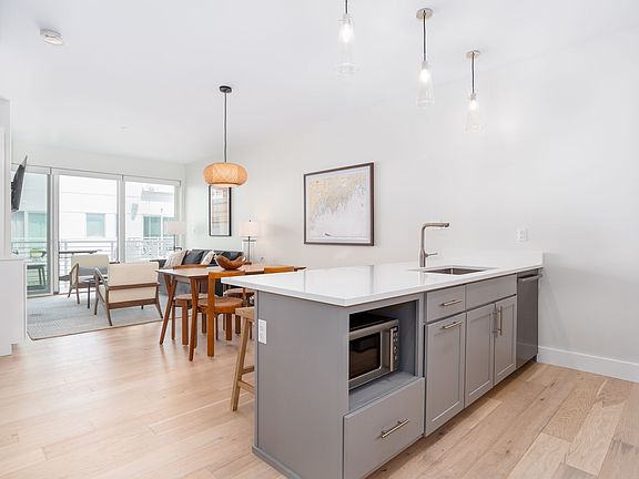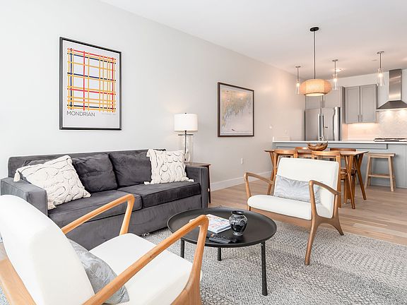This fully furnished fifth-floor 1-bedroom, 1-bath condominium boasts a thoughtfully designed single-level layout. The inviting living room is enhanced by a gas fireplace, motorized shades, glass doors to a private deck, and includes a queen size sofa bed. The bedroom suite features a spacious bath with radiant in-floor heat. Additional features include deeded garage parking, and a private storage area. The exceptional community offers a suite of premium amenities, including concierge services, a club room, fitness center, co-working space, reservable guest suite, dog wash, and access to a reservable Tesla and community bikes. Nestled in the heart of the city, just moments from renowned restaurants, boutiques, museums, music venues, and galleries, Hobson's Landing sets the standard for urban luxury living.