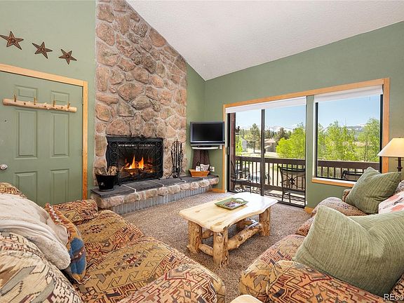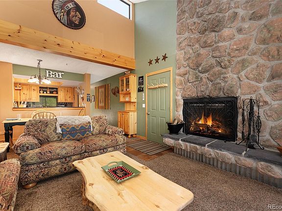 Welcome to your Rocky Mountain Retreat in the heart of Grand County, Colorado! This tranquil top floor mountain rustic condo is perfect for adventurers and those seeking a serene mountain escape. Enjoy the ambiance while taking in stunning mountain views and the fresh mountain air from the deck, or relax in front of the cozy wood-burning fireplace. This south facing top floor condo offers abundant lighting with vaulted ceilings and skylights. The fully-furnished unit includes beautiful log bed frames: the primary suite has a king bed + en-suite full bath and the second bedroom offers a queen bed + twin bunk beds, with an additional full bath in the hallway. The remodeled kitchen is fully equipped and ready for you to entertain or be entertained. Turnkey and meticulously maintained, recent updates include new blinds in the living room and blackout blinds in bedrooms, with upgrades to include granite countertops in the kitchen and knotty pine, solid wood doors through the condo, plus in-unit washer & dryer (additional laundry facilities at Clubhouse). All furnishings, including extra linens, bedspreads, and all kitchenware are included. + NEW ROOF just put on!