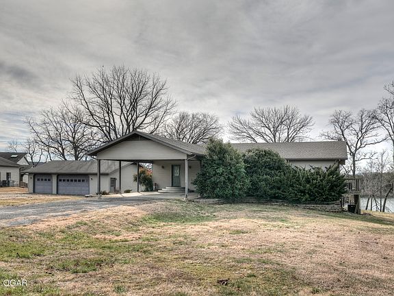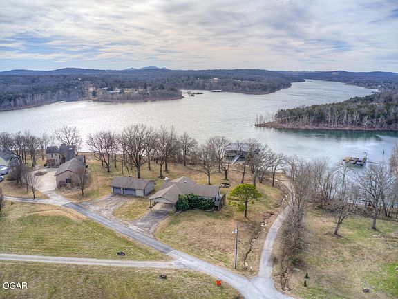 Enjoy the peace and quiet of nature while sipping coffee in your enclosed sunroom overlooking Table Rock Lake. Listen to the waterfall on your rare gentle walk down to the lake right out your back door. 2 slips are included and are just steps away from the home. The home is situated on a nice cove, perfect for fishing and swimming. The home has 5 bedrooms, 3 bathrooms and is nicely updated with open concept. Large sunroom, granite countertops in kitchen, engineered hardwoods and tons of storage. The basement has a wet bar/kitchenette with large family room. Built in bunk beds and sitting area in 5th bedroom. Covered patio out the basement door. 40x30 detached 3 car garage with wood stove. This is the perfect lakefront getaway!